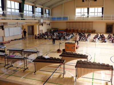 体育館内の準備が整いました。今後、6年生の子供たちは、会場となる「煉瓦ホール」を意識した練習を体育館で行います。