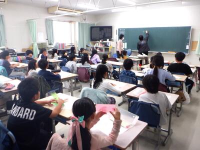 昨日の手話体験に続き、本日(11月7日)も社会福祉協議会のご協力を得て、3年1組と5組の子供たちは「点字体験」を行いました。