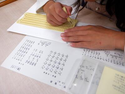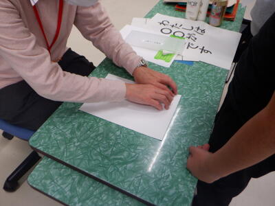 子供たちが打ち終わった点字は、講師の先生に読んでもらいます。一人一人に応じた指導をいただきました。