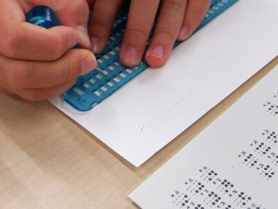 講師からお話をいただいた後、子供たちは点字キットを使って、実際に点字を打つ活動に取り組みました。