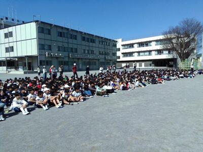 本日(1月20日)、全校の子供たちが校庭に集まり、「全校朝会」を執り行いました。