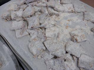 ↓↓↓たっぷりと、そしてきれいに粉をまとわせて、油で揚げます。
