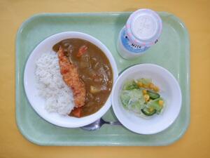 カツカレーライス・キャベツとコーンのサラダ・牛乳