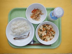 ご飯・ししゃもの素焼き・西湖豆腐・もやしのナムル・牛乳