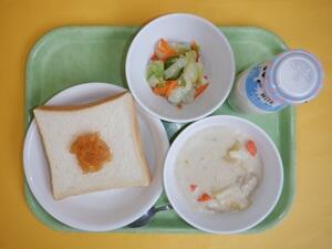 食パン&手作りりんごジャム・コロコロ和風シチュー・ボイルサラダ・牛乳