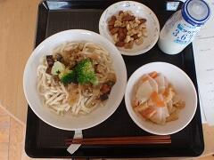 今日の給食は、本校6年生の児童が今年度のひのっこシェフコンテストに応募した料理を再現しました。料理名は「日野の恵みのジャージャーうどん」です。その名の通り、日野市でとれる食材をふんだんに使ったメニューです。彩りもよく、食欲をそそる一品とりました。