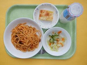 スパゲティナポリタン・ボイルサラダ・ヨーグルトポムポム・牛乳