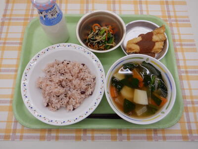 精白米(秋田県)/さごし()/鶏肉(青森県)/きざみのり(国産)/小松菜(東久留米市)/しょうが(熊本県)/にんじん(茨城県)/ほうれん草(清瀬市)/もやし(栃木県)/だいこん(三浦半島)