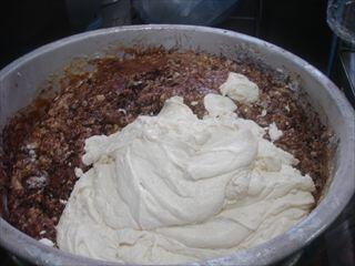 今日はバレンタイン献立を作りました。「豆腐入りココアケーキ」は粉類と一緒にココアパウダーを合わせてふるい、卵や豆腐、砂糖などと一緒に合わせて生地を作ります。米粉や豆腐も使っているのでしっとりした生地になります。