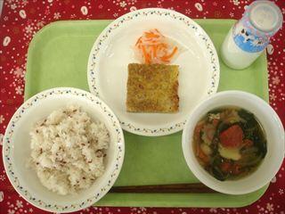 【献立】赤米ご飯 松風焼き 紅白なます 紅白白玉団子汁 牛乳