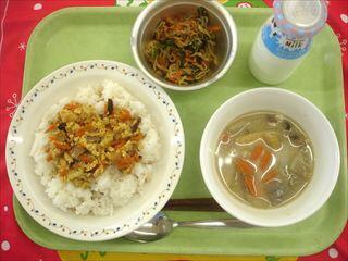 米・・・宮城県、玉葱・・・北海道、ごぼう・・・青森県、里芋・・・埼玉県、もやし・・・栃木県、人参・・・日野市(伊藤通夫様より)、大根、小松菜・・・日野市(福島幹男様より)、たまご・・・日野市(由木勉様より)、鶏肉・・・宮崎県、油揚げ・・・滋賀県、絞り豆腐・・・愛知県