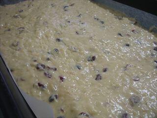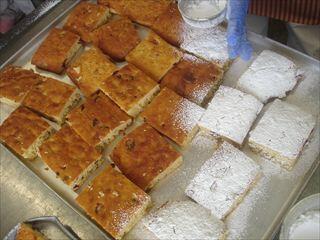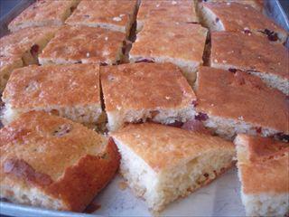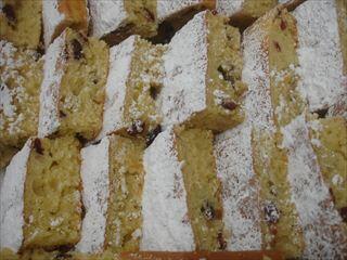 今日は「シュトーレン風ケーキ」を作りました。バターをふんだんに使った生地の中にラム酒に漬けたクランベリーや刻まれたアーモンドが練りこまれています。表面にはたっぷりの粉砂糖がまぶされています。人気のあるクリスマス献立です!