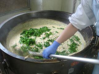 「菜の花のクリームスパゲティ」にはビタミンDを多く含むきのこ類を入れています。牛乳もたっぷり使っており、カルシウムもとれます。この時期にとれる菜の花も入れています。