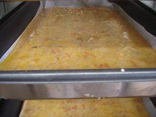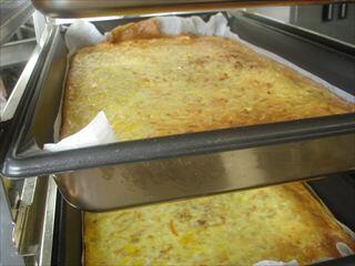 今日のトマトソースには玉葱、マッシュルーム、えのきたけ、ぶなしめじが入っていてきのこのうま味たっぷりです。トマトソースは赤ワインやウスターソースなども一緒に煮詰めています。卵焼きには豚挽き肉、玉葱、人参、じゃがいもが入っています。ふんわり焼きあがりました!
