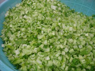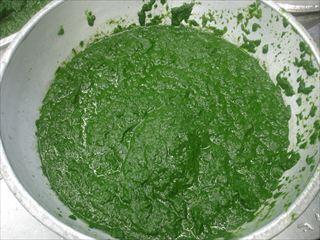 今日は「小松菜のドライカレー」を作りました。小松菜は茎と葉に分けて使います。茎は茹でてご飯に合わせます。葉は茹でたらミキサーにかけ、ペーストにしてからカレーの中に合わせています。小松菜をふんだんに使ったドライカレーです。