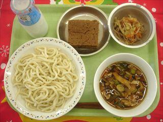 【献立】豚ねぎうどん とさあえ 黒ゴマ蒸しパン 牛乳