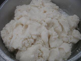 五平餅はアルファ化米を使って作りました。お米の甘さと味噌の相性が抜群です。