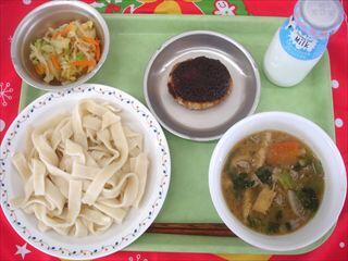 【献立】ほうとう キャベツのゆず醤油 五平餅 牛乳