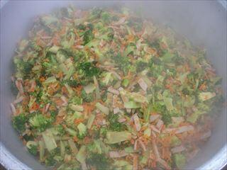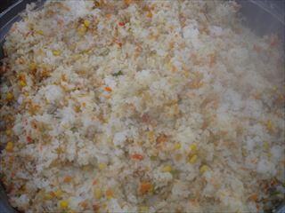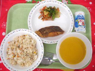 「カラフルピラフ」はクリスマスを連想させる赤や緑の食材を入れています。