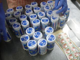 今日はクリスマス献立です。調理員さんが1つ1つ気持ちを込めてジョアにシールを貼ってくれています!