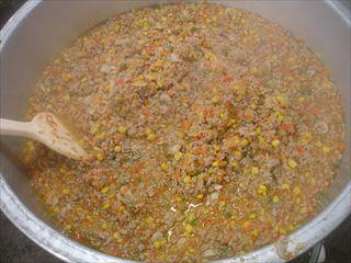 米・・・千葉県、玉葱・・・北海道、赤ピーマン、ピーマン・・・高知県、マッシュルーム・・・茨城県、レモン・・・愛媛県、にんにく・・・青森県、ブロッコリー・・・香川県、かぼちゃ・・・鹿児島県、人参・・・日野市(旗野利之様より)、豚ひき肉・・・群馬県