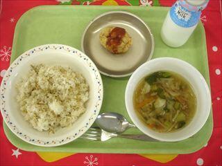 米・・・宮城県、にんにく・・・青森県、玉葱・・・北海道、生姜・・・高知県、人参・・・茨城県、キャベツ・・・愛知県、小松菜・・・日野市(旗野利之様より)、じゃがいも、たまご・・・日野市(由木勉様より)、ちりめんじゃこ・・・兵庫県、豚肉・・・群馬県、鶏肉・・・宮崎県、おから・・・愛知県