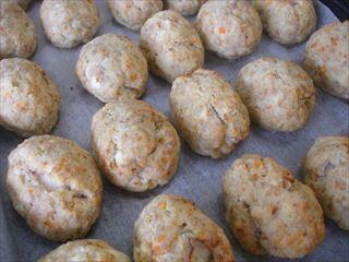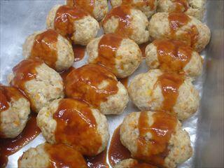 今日は「スコッチエッグ」を作りました。今日の給食では、うずらの卵を肉だねで包んでオーブンで焼きました。肉だねにはおからも入っています。ソースも手作りで作っています。