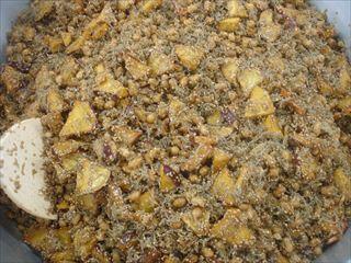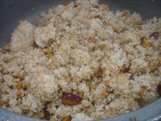 今日は「いい歯の日(11月8日)」にちなんで山坂達者飯を作りました。鹿児島県の料理で「あごの力を鍛える」ために考えられた料理です。揚げたさつまいもと大豆、ちりめんじゃこが入っています。