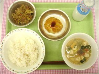 【献立】ご飯 おから入りつくね焼き 切干大根のごま炒め 呉汁 牛乳