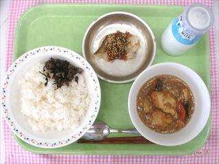 【献立】ご飯 ひじきとツナのふりかけ たらの香味焼き 厚揚げの中華煮 牛乳