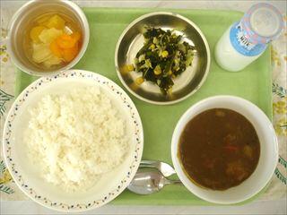 【献立】カレーライス わかめサラダ フルーツサイダーポンチ 牛乳