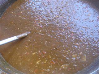 玉葱はよく炒め、肉は別煮してやわらかくしてから、他の食材や調味料と合わせてさらに煮込んでいます。