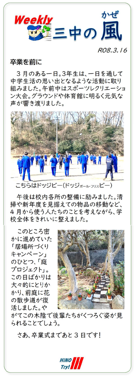 3年生にとって、学校給食をたべるのは今週で最後です。