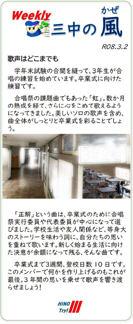 2年生家庭科コラボ・郷土料理「水無月」 カレンダー 02/27 今日の給食 webadmin 『本日の献立』 かやくごはん めひかりの薬味あんかけ ゆば入りすまし汁 水無月 牛乳 今日は2年生の家庭科学習とのコラボ給食「郷土料理」を提供します。調べてくれた料理は、京都府の「水無月」です。 京都で6月30日に食べられる特別な和菓子です。ういろう生地の上に甘く煮た小豆がぎっしりとのった和菓子です。 給食室では、大量調理のため、試行錯誤しながら何度も試作を重ねました。 生徒たちによろこんでもらえればうれしいです。 【食材の産地】 ◎地元 日野産食材 ねぎ(生産者 平山地区 馬場 昌生さん) にんじん(生産者 平山地区 籏野 利之さん) ごぼう:青森県 しょうが:熊本県 にんにく:青森県 大根:神奈川県 えのきたけ:長野県 めひかり:宮崎県 鶏肉:山梨県 油揚げ:富山県
