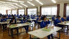 みんなテストに一生懸命取り組んでいました! 寝た時間を聞いてみると「3時に寝ました。」という人もチラホラいました。