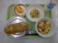 今日の主食は給食の定番人気メニュー「揚げパン」です。みなさんは揚げパンが学校給食から生まれたメニューだということを知っていますか?揚げパンは戦後間もない昭和27年に大田区の小学校で誕生しました。当時の日本はまだまだ貧しく、給食のパンは貴重な栄養源でした。また、その当時は今と違って残ったパンを欠席した生徒に持って帰ってあげることができました。時間がたって固くなってしまったパンを何とかおいしく食べさせてあげたいとの思いで給食調理員さんが、パンを揚げて砂糖をまぶすと、時間がたっても固くなりにくいということを思いつき、そこから「揚げパン」が生まれました。そんな時代から70年がたった今、世界では食品ロス(食べられるのに廃棄されてしまう食品)が問題となり、日本では一人当たり毎日お茶碗1杯分のご飯を捨てているのと同じ量の食料が廃棄されています。世界では毎年約13億トンの食料が廃棄されています。これは世界の食料生産量の3分の1にあたる量です。まずは身近なところから食品ロスをなくしていく意識をもって取り組んでいきたいですね。