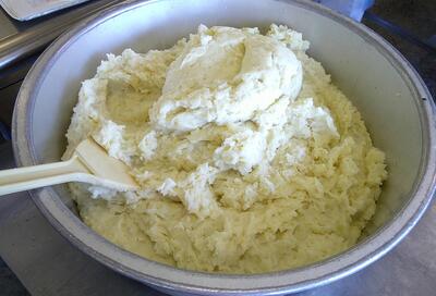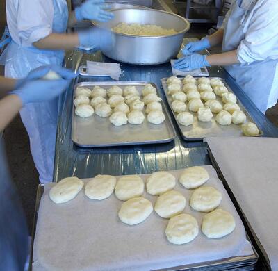 12月から2月にかけて、2年生が家庭科学習として調べた「郷土料理」を提供してきました。その中から、「おいしい」「もっと食べたい」との声の多かった、北海道郷土料理「いももち」を再度提供しました。