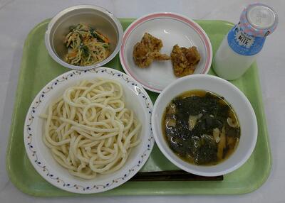 今日は、お好みでうどんに唐揚げをトッピングできるように、「うどん」と「唐揚げ」を提供しました。