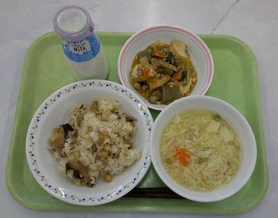 朝、晩と気温が下がり、冬のような気候ですが、11月は「秋」のイメージということで、秋の味覚である「きのこ」を使用したおこわを提供しました。