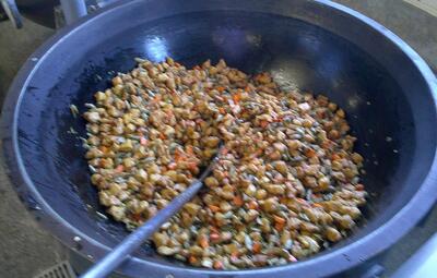 朝早くから、じゃが芋を洗い、皮むき、芽とり、そして蒸してつぶす・・・ところから調理していきます。