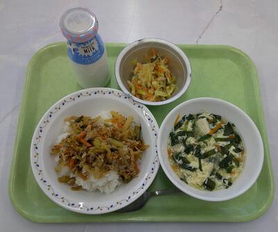 副菜には、冬が旬の「ゆず」を使用し、絞った果汁を加えた味噌和えにしました。さわやかなゆずの風味が楽しめます。