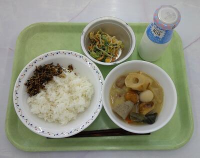 今日の給食は、2年生の家庭科学習とのコラボ給食「郷土料理」の提供です。