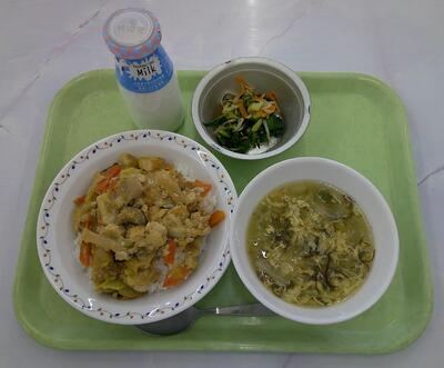 今日の主食は「家常豆腐丼」です。中国四川省の料理で、「家庭で日常的に食べられている豆腐料理」という意味をもつ、豆腐を使った炒め煮の料理です。