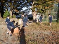 11月17日(月)の放課後、生徒会主催によるクリーン作戦が行われました。105名の生徒が参加し、校庭や学校のまわりの落ち葉や枯草、ゴミを集めました。集めるのはなかなか大変で、普段きれいな状態が当たり前のように使えているのは誰かがきれいにしてくれているからだと実感できたのではないでしょうか。作業が終わるとみんなどこかしらすっきりとした顔をしていました。