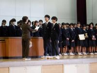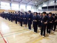2学期終業式 投稿日時 : 12/25 webadmin 12月25日(木)で2学期が終了しました。 発声練習の後、終業式始めに全生徒で校歌を斉唱しました。校長から「自分の強みだけでなく、弱みも見つめなおすと成長につながる。」と話がありました。 終業式後、生活指導主任から「不安や悩みなどがあったら周りの大人に相談してください。相談できない場合は相談できるところがあるので一人で悩まないで相談をしてみてください。」と話がありました。その後、女子バスケットボール部、バドミントン部、バレーボール部、緑と清流ポスター、人権作文、生徒会の表彰がありました。