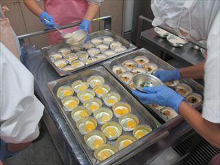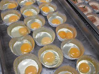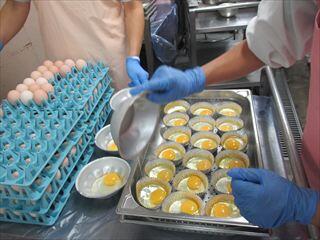 調理員さんは、卵の殻が入らないように、ひとつひとつ丁寧に作ってくれました。