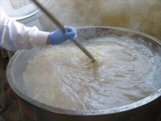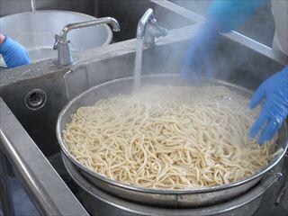 今日は、全校分で約90kgのうどんを茹でたので、給食室では3回に分けて茹でました。