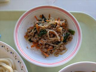 「納豆サラダ」は、納豆と野菜を各自で和えていただきました。