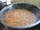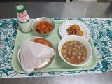 *今日はフィンランドの料理「シスコン・マッカラケイト」です。フィンランド語で、シスコンは「小さな」、マッカラは「ソーセージ」という意味です。本場では、フランクフルトサイズのソーセージを使うそうですが、給食バージョンで小さなソーセージにしました。