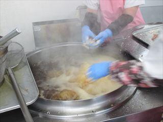 今日は、3年生は最後の給食です。3年生の門出を祝い、「お赤飯」と、リクエスト献立の主菜部門で全学年1位だった「鶏の唐揚げ」です。